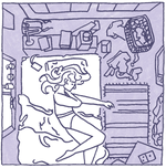 (For my first year at university, I had to wake up too early and take the train every day then sit through classes that were way too fast and difficult for me to follow. I’d picked the wrong major and that year was a complete failure; attending class felt completely pointless. I was falling asleep in my chair and daydreaming that the chairs and desks and stationery would begin to fly so I could fly and sleep too.)